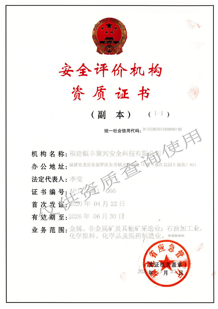 版權(quán)所有:福建銀豐聚興安全科技有限公司 地址:福建省龍巖市新羅區(qū)東肖鎮(zhèn)龍騰南路14號(hào)(珠江花園B地塊)801 電話: 0597-2103648 0597-2103956 (礦山) 0597-2286058 (; 傳真:0597-2103946 閩ICP備11025270號(hào)-2